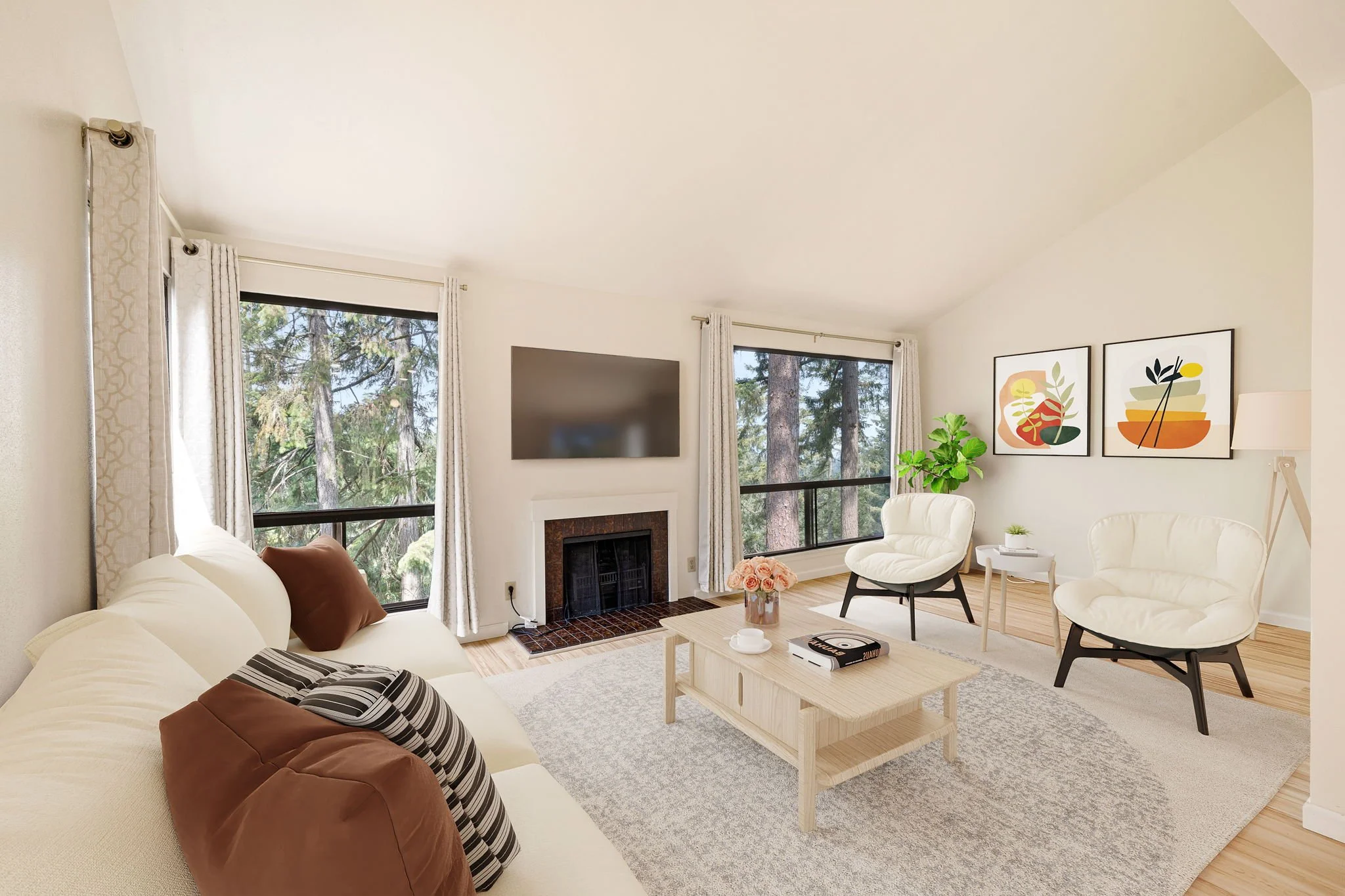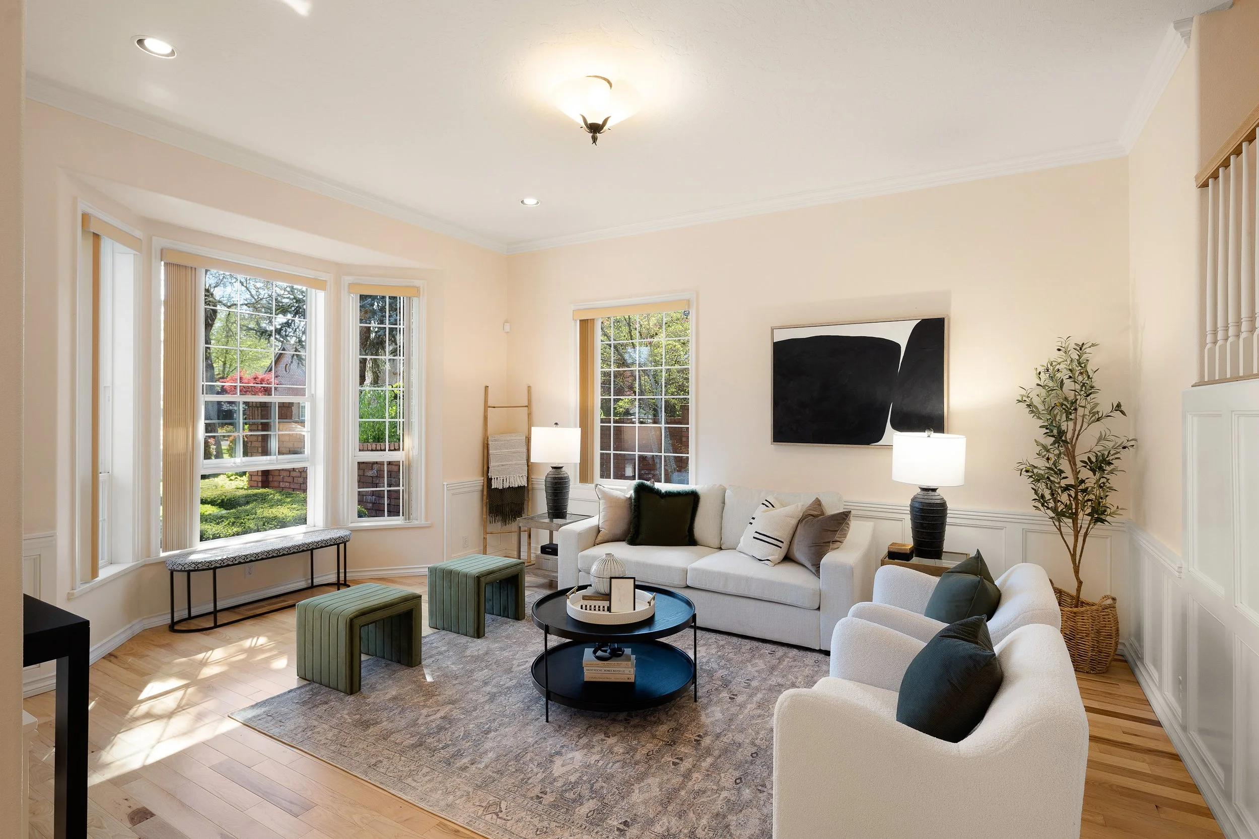 For added versatility, we also provide virtual staging, using high-quality digital renderings to enhance photos of vacant or partially furnished spaces. We also offer hybrid staging, a flexible option that blends the homeowner’s existing pieces with our curated furnishings and accessories to complete the look—perfect for occupied homes that need a polished refresh.